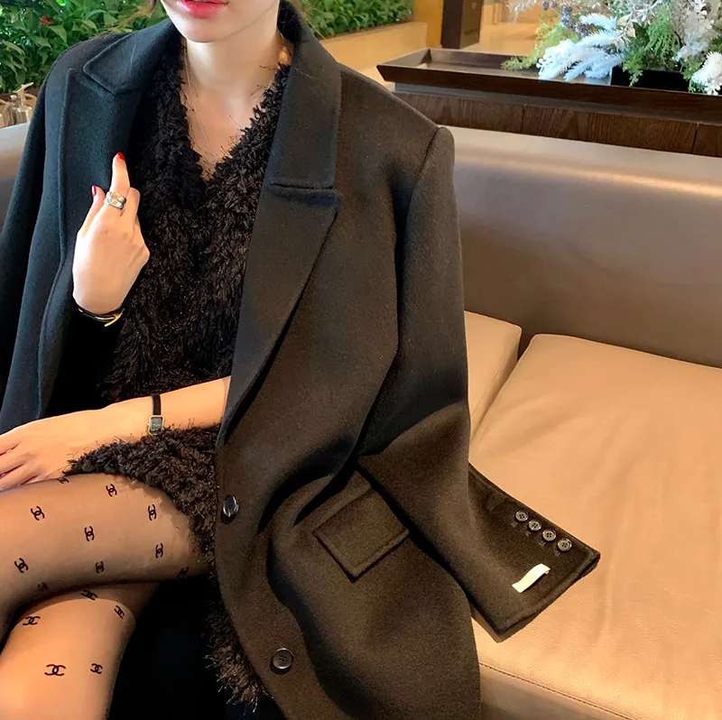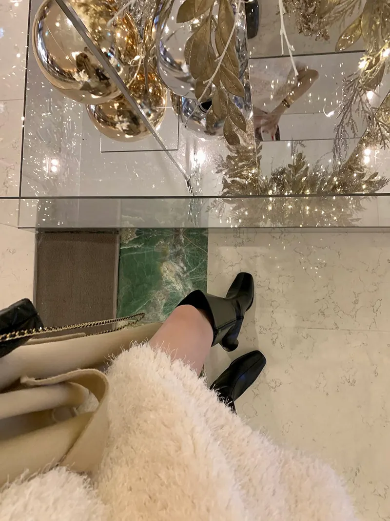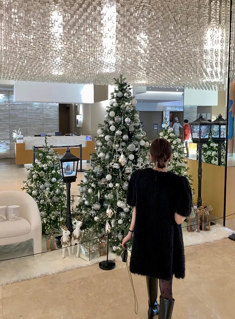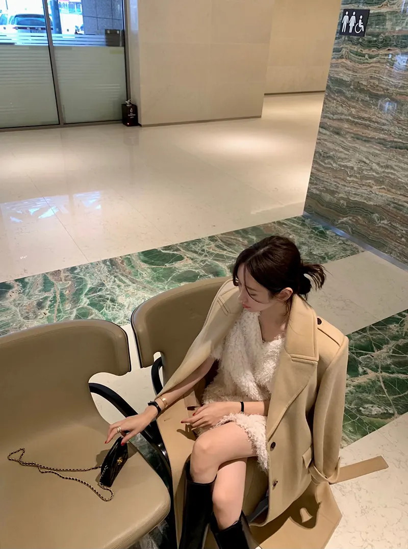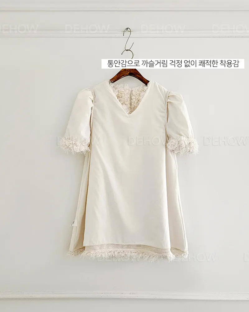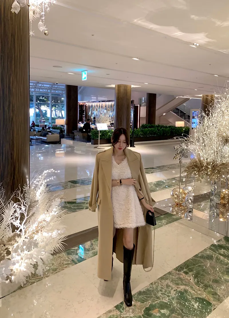Embrace the latest Korean chic trend with this stylish V-neck fluffy dress, perfect for autumn and winter.