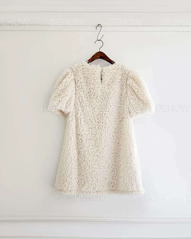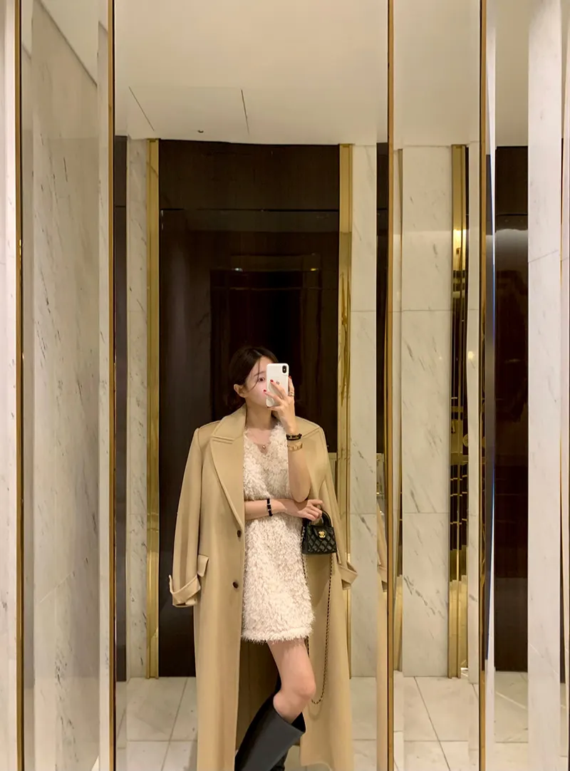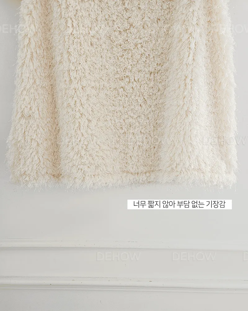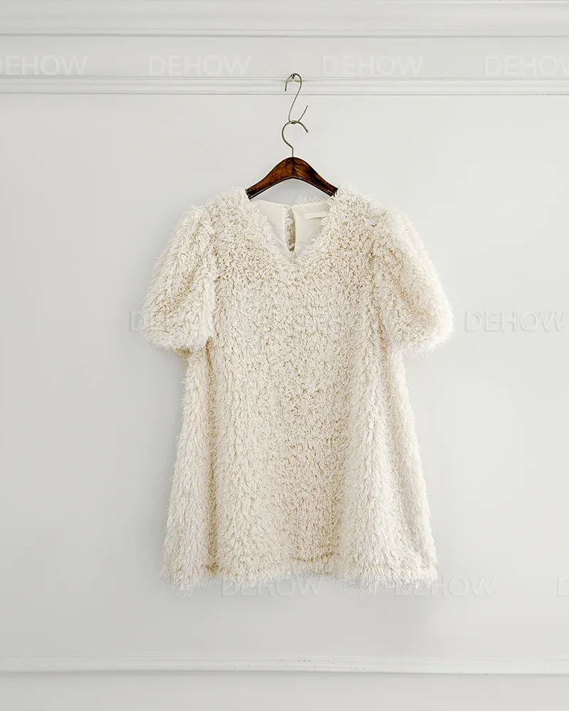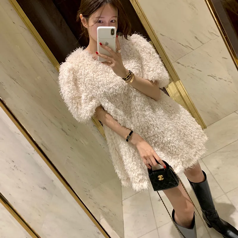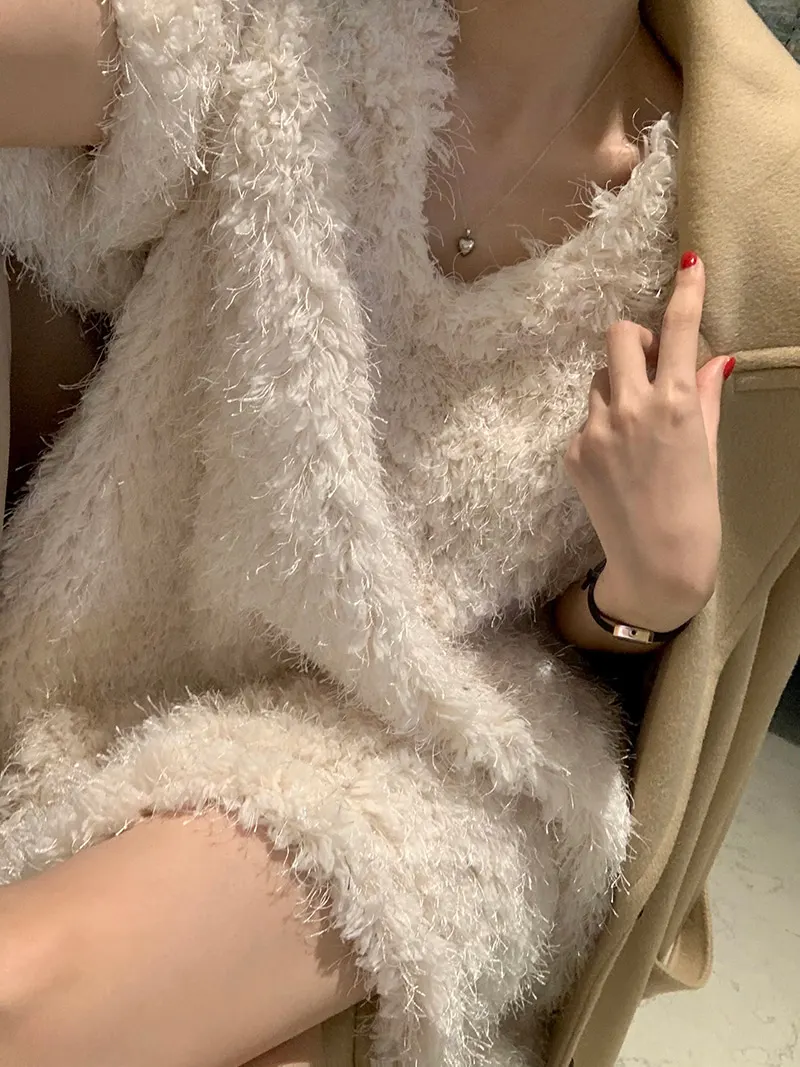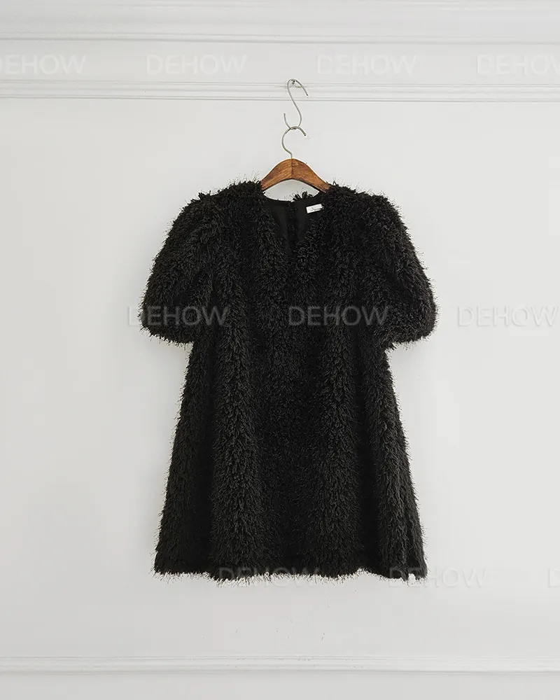 Chic Autumn Winter Soft Sle V-Ne Fluffy Loose Casual Color Ort Sve Dr Skirt Women'S Faion Commute